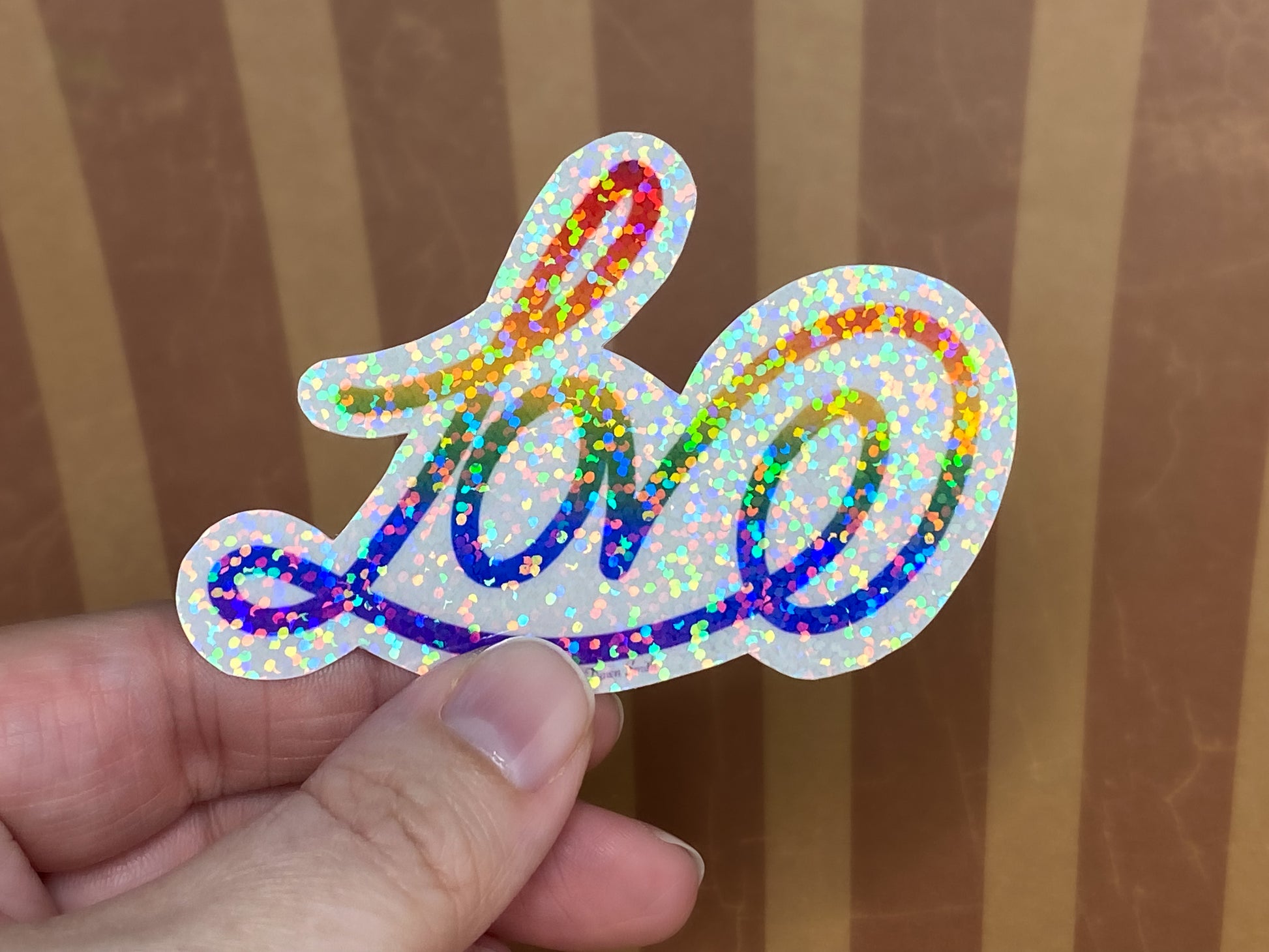 This sticker is designed, printed, laminated, and cut in house. It comes in a variety of finishes. 20% of each sale will be donated to Rainbow Youth Project.