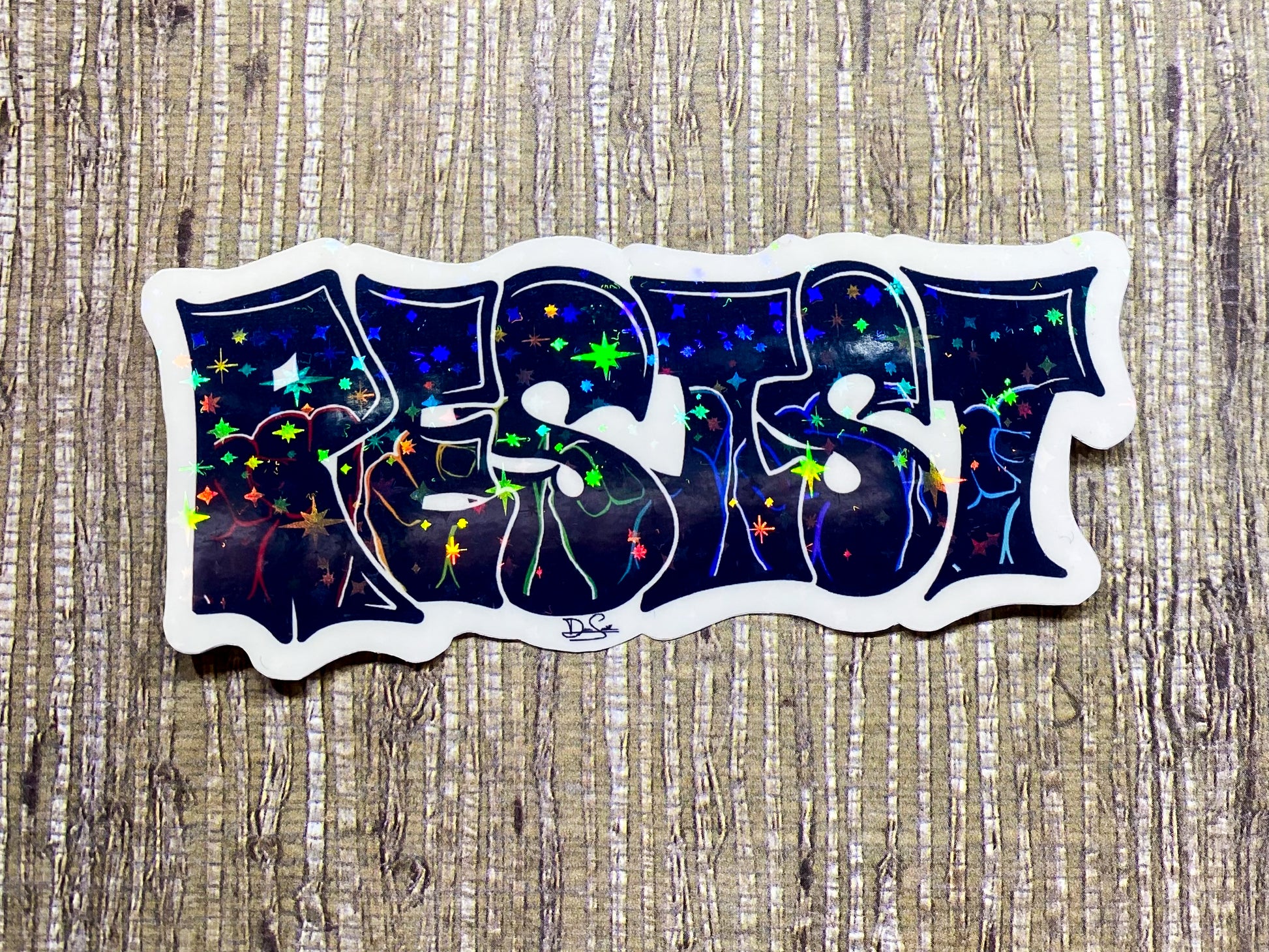 This sticker is designed, printed, laminated, and cut in house. It comes in a variety of finishes.